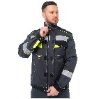 Костюм "КОРВЕТ" с СОП нагрудные накладные карманы с фигурными клапанами на кнопках,нижние карманы в рельефных швах полочек. Усилительные накладки в области локте обеспечивают дополнительную защиту. Куртка на поясе с фигурной линией низа по спинке. Полукомбинезон оснащен различными многофункциональными карманами для хранения мелочей. Гульфик застегивается на молнию, в правом боковом шве на пуговицы. Эластичная резинка по спинке талии фиксирует посадку. Бретели на пластиковых застежках (фастексах) регулируются по длине за счет эластичной резинки. Держатель полукольца расположен на куртке и полукомбинезоне. Для безопасной работы сотрудника в местах с плохим освещением на костюме предусмотрена светоотражающая полоса шириной 50 мм. Благодаря декоративным элементам контрастного цвета работника видно издалека в светлое время суток.
